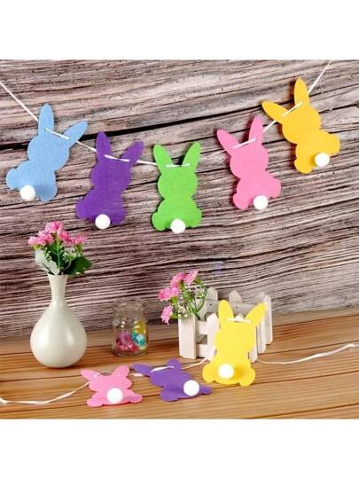 1 Set Easter Bunny Felt Garland Colorful Polyester Fiber Decorative Hanging Strings For Spring Themed Party, Family Yard, And Outdoor Easter - Multicolor - View 6