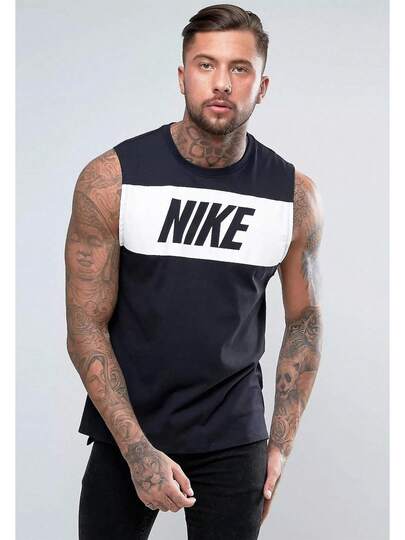 Nike Mens Vest Retro Big Logo Sports Gym Sleeveless Tank Top - Black - View 1
