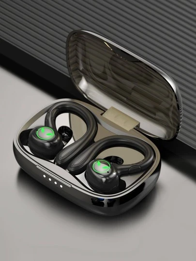 Noise-Proof Waterproof Wireless Ear Hook Earphone - Black - View 1
