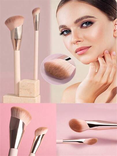 2 Pieces Set Of High-Quality Solid Wood Pole Plus Aluminum Tube Concealer Brush, Makeup Beauty Brush, Concealer Blending Brush, Under-Eye Concealer Brush (Blush Brush + Concealer Brush),Brush Set,Makeup Brush Kit,Make Up Brush Set,Make Up Set Complete,Makeup Brush Set,Complete Makeup Kit,Brush Kit,Brushes Makeup Set,Makeup Gift Set,Set - Multicolor - View 1