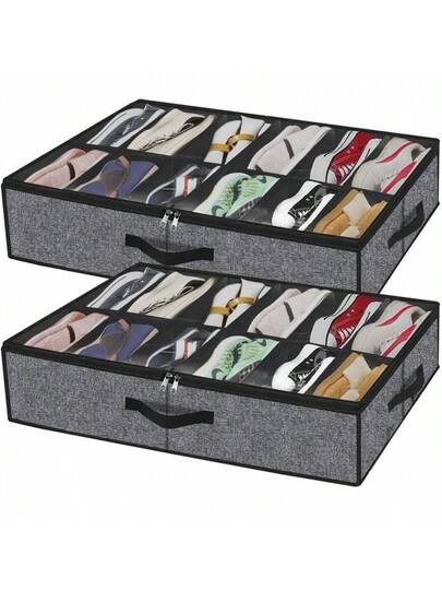 OBOVAY 12-Grid Transparent Cover Nylon Shoe Storage Box, Waterproof Under Bed Shoe Organizer With Zipper And Handle, Multi-Function Wardrobe Shoe Organizer - Multicolor - View 1