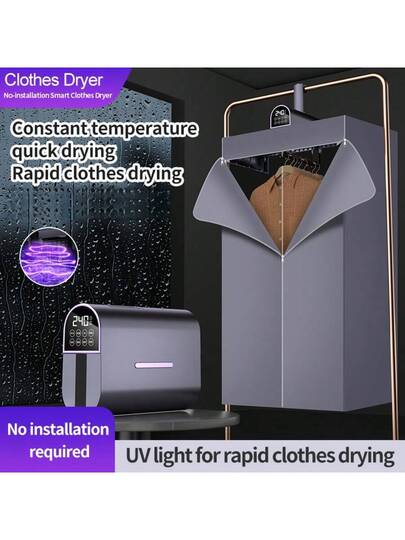 OBOVAY Portable Foldable Electric Clothes Dryer, Remote Control Multi-Function Drying Machine, Mini Travel Warm Air Clothes Dryer With Timer Function - UK Plug(220-240V) - View 1