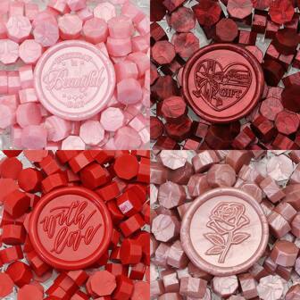 100pcs/Bag Red Series Wax Seal Beads, Octagonal Shape, For Envelope Sealing, Wedding Invitation, Gift Packaging