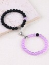 2pcs/Set 8mm Pink, Light Purple, Black & White Handmade Beaded Elastic Couple Bracelets, Gift Card Included For Valentine's Day