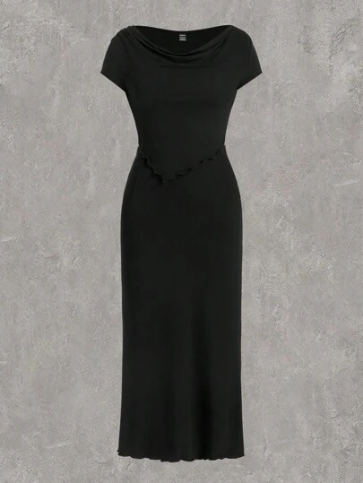 SHEIN EZwear Off Shoulder Dress With Asymmetrical Hem In Black - Black - View 1
