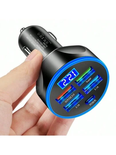 Olaf 250W Car Charger 5Ports Super Fast Charging Adapter Quick Charge 3.0 Compatible With Iphone 12 13 Xiaomi Note Samsung Huawei In Car - Black - View 1