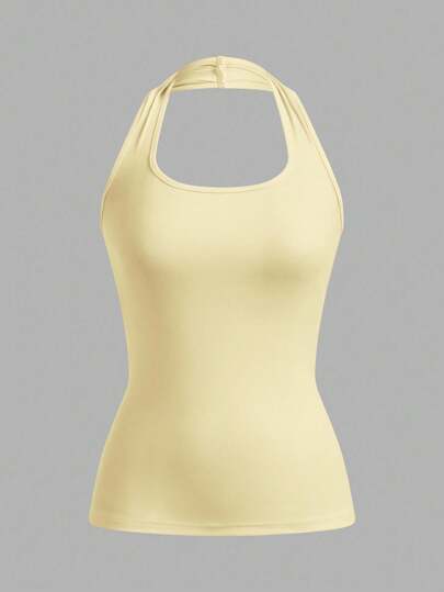 SHEIN EZwear Women Yellow Fitted Casual Racerback Tank Top, Suitable For Summer Butter Yellow Top Back To School - Yellow - View 1