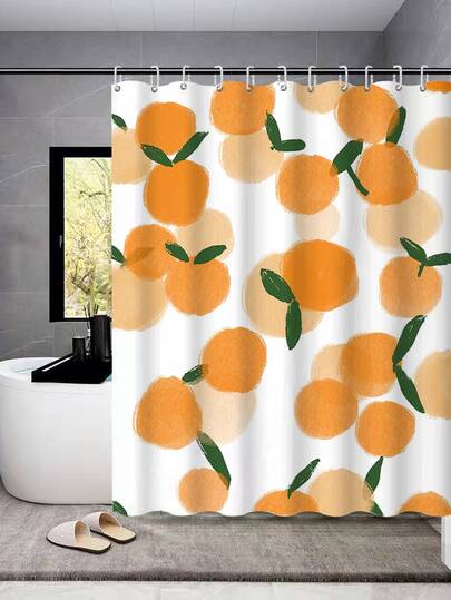 Orange Print Shower Curtain - Multicolor - View 1