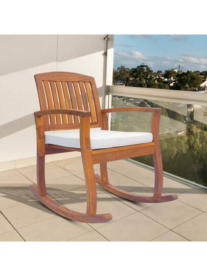 Outsunny Garden Acacia Wood Rocking Chair Deck Indoor Outdoor Porch Seat Rocker With Cushion - Teak - View 1