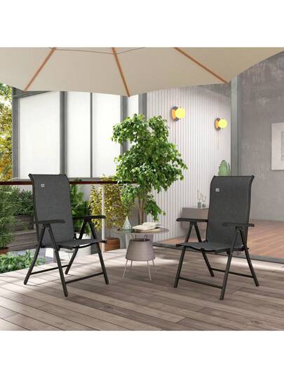 Outsunny Set Of 2 Outdoor Wicker Folding Chairs, Patio PE Rattan Dining Armrests Chair Set With 7 Levels Adjustable Backrest, For Outdoors, Camping - Grey - View 1