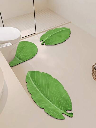 1/3pcs Bathroom Non-Slip Absorbent Mat, Large Leaf Pattern Silica Gel Mat, Bathroom Set, U-Shaped Toilet Mat, Sink Absorbent Foot Mat, 2.5mm Thickness Kitchen Rug - Olive Green - View 14