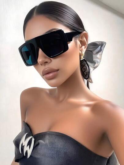Oversized Plastic Frame Decorative , Beach Vacation Fashion Y2K Style Glasses, Unisex - Multicolor - View 1