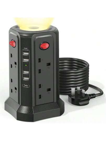 PASSUS UK Overload Protection Electrical Sockets, With Multi-Functional USB Charging Tower With 20W PD Fast Charge Port, Supporting A Total Output Of 3250W Power, Suitable For Home And Office. - UK Plug(220-240V) - View 1