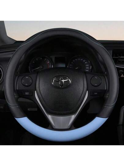 PU Leather Contrast Colour Car Steering Wheel Cover  Sweat Absorbent, Wear Resistant And Non-Slip, Universal In All Seasons - Blue - View 1