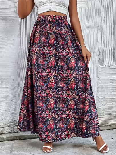 Paisley Print Maxi Skirt - Multicolor - View 1