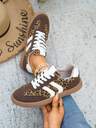 Casual Preppy Office/School Lace-Up Flat Sneakers For Women, Beige & Brown Patchwork, Retro Fashion Outdoor Sports Running Shoes, Spring/Summer/Autumn