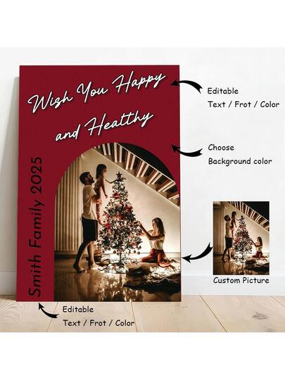 1pc Art Decor Modern Custom Unframed Canvas Poster - Family Anniversary Memory Decoration - Personalized Photo Art Decoration With Added Text And Photos Wall Art Decor For Home Office, Living Room, Bedroom - Indoor Wrapped Canvas Wall Hanging - Red and White - View 18