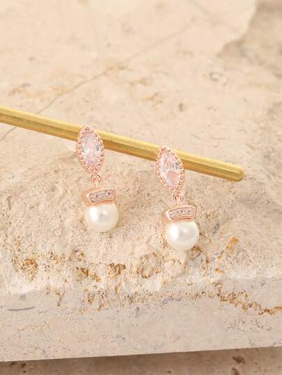 Faux Pearl Decor Drop Earrings - Rose Gold - View 1
