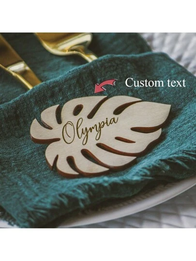 Personalized Leaf Name Place Cards, Drink Tags, Custom Party Decorations, Wooden Place Cards, Table Setting, Tropical Wedding Table Seating Decorations, Shower Favors - Wood - View 1