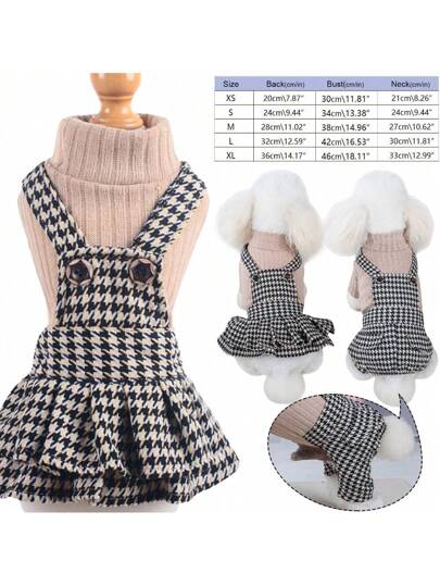 Pet Clothes, New Overalls Matching Outfit (Jumpsuit With Suspender Dress & Pants), Classic Houndstooth, Small Wooden Button, Suitable For Small Dogs - Multicolor - View 1