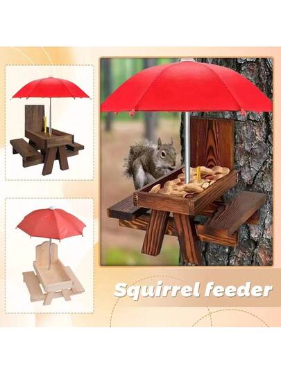 Pet Feeding Station Natural Solid Wood - Anti-Slip Anti-Splash Auto Feeder For Squirrels & Birds - Multicolor - View 1