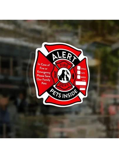 Pet Safety Warning Sticker - 4pcs Assorted Shape Stickers Warning Alert Safety Fire Rescue Decal - Waterproof Sticker For Saving Our Cats/dogs Pets In Case Of Fire Emergency, Firefighters Will See The Alert From Windows, Doors Or House To Rescue Our Families - Red - View 7