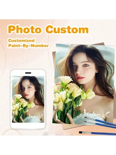 Photo Custom Oil Painting By Numbers Set Drawing On Canvas Drawing By Numbers Set Personalized With Your Own Photos Hand Paint Kits Canvas Handpainted Gift - Black - View 1