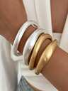 1pc Exaggerated Metallic Circular Bangle With Hollow Out Asymmetrical Shapes, Simple & Stylish, Perfect For Vacation, Party, Ladies All-Match Sexy Bracelet