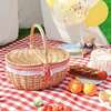 Wicker Picnic Basket With Lid, Vintage French Country Style Rattan Storage Basket, Lace Bow Decor, Outdoor Camping, Beach, Park, Garden Party Photography Prop, Home Storage Gift