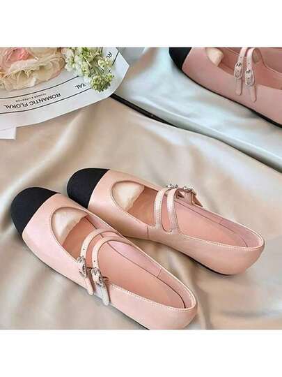 2025 Spring And Summer New Colorblock Diamond Buckle Mary Jane Ballet Shoes - Pearlescent Powder - View 1