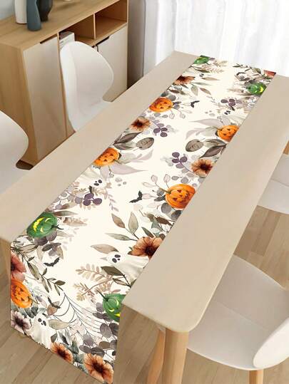 1pc Halloween Decoration Table Runner, Spooky Ghost Pumpkin Pattern Polyester Table Cover, Happy Halloween Decoration Table Cloth, Trick Or Treat, Halloween Boo Ghost Tablecloth, Halloween Cabinet Decorative Covers, Dining Table Centerpiece Table Set, Halloween Event Decoration Table Flag, Room Decor Home Decor Table Skirt, Halloween Decoration, Halloween Gift, Party Favor - Pumpkin Ghost - View 1