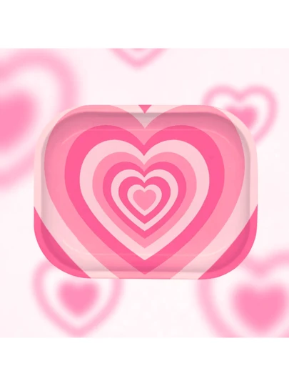 JBNG Pink Heart Aesthetic Premium Small Rolling Tray 7" X 5" - Pink - View 1