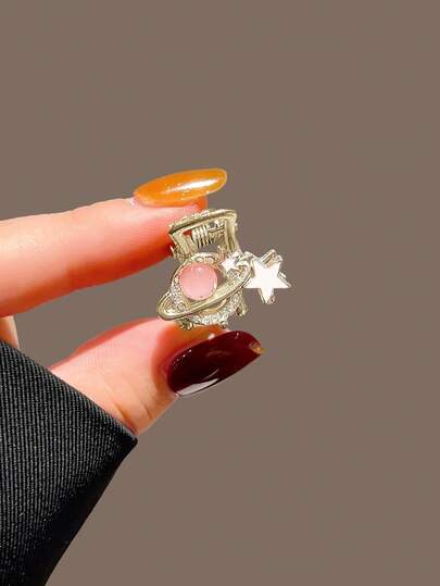 Pink Planet Mini Hair Claw Clip, Petite & Delicate Side Bangs Clip, Small Hair Accessory For Women Summer Beach Hair Clips