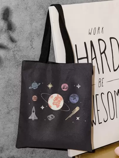 Planet Graphic Shoulder Tote Bag - Multicolor - View 1