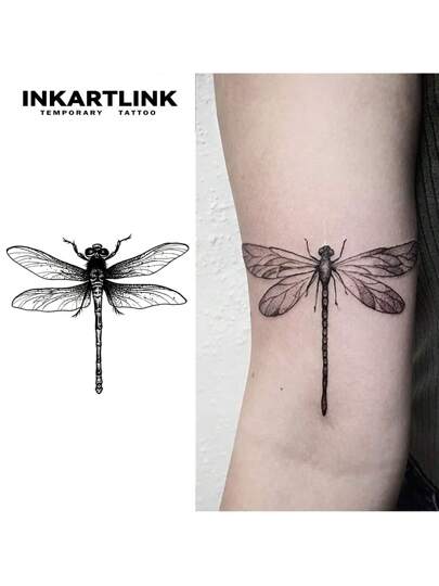 INKARTLINK Revolutionary Tattoo Technology, Semi-Permanent Tattoo, Dragonfly, Heart Tattoo, Temporary Tattoo, Waterproof, Authentic Tattoo Appearance, Botanical Tattoo, Hand Tattoo - Black - View 1