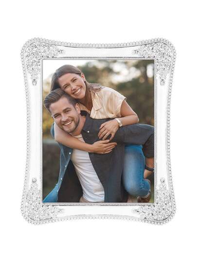 Plated Picture Frame With Crystal For Wedding Shiny With Clear Glass Photo Frames For Tabletop Decor - Silver and White - View 1