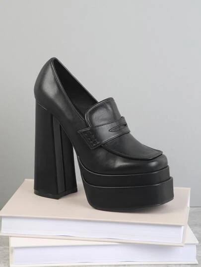 Platform Chunky Heeled Loafer Shoes