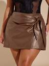 SHEIN BAE Plus Size Women Fashion Commuter Simple Versatile Solid Color PU Leather Knot Side Skirt
