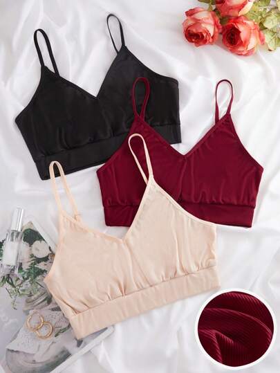 Plus 3pcs Solid Bra - Multicolor - View 1