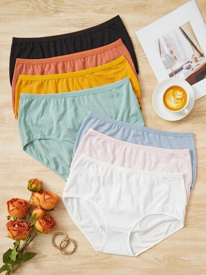 Plus 7pack Solid Simple Panty - Multicolor - View 1