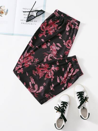 Plus Chinese Dragon And Phoenix Print Sleep Trousers - Multicolor - View 1