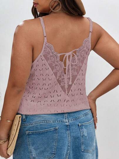 SHEIN Frenchy Plus Contrast Lace Tie Back Cami Top - Dusty Pink - View 6