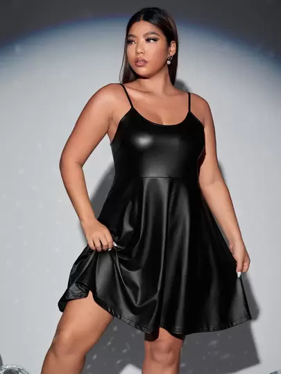SHEIN BAE Plus Flare Hem Cami Dress - Black - View 1