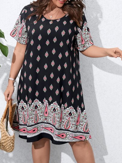 SHEIN LUNE Plus Floral Print Tunic Dress - Multicolor - View 1