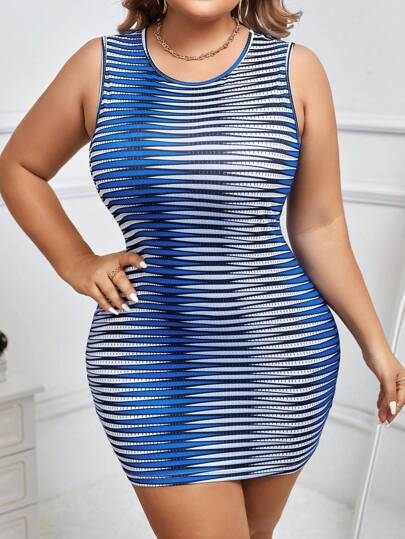Celure Plus Geo Print Tank Dress - Blue - View 5