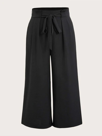 SHEIN EZwear Plus High Waist Belted Wide Leg Trousers - Black - View 1