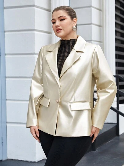 BizChic Plus Lapel Neck PU Leather Blazer - Gold - View 1