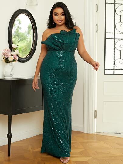 seomiscky Plus Off Shoulder Sequin Formal Dress Formal Dresses Curve - Dark Green - View 1