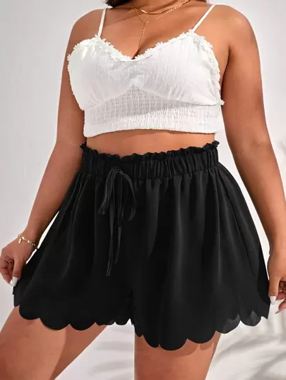 SHEIN Frenchy Plus Scallop Trim Tie Front Shorts - Black - View 1
