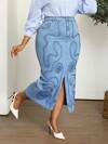SHEIN SXY Plus Size Slit Denim Skirt